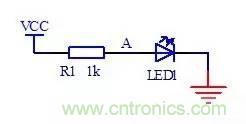 在電源與電路的A之間接入電阻時,A點的電壓就比電源電壓低,可以為發光二極管提供合適的電壓。電阻R1同時限製該條支路的電流,保護發光二極管不會因為電流太大而燒壞,這種電阻在電路中一般稱為降壓電阻或者是限流電阻。