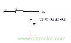 當一個電壓U1太高時,可以用兩隻電阻構成分壓電路,降低電壓為U2,U2符合電阻分壓公式U2=U1*R2/(R1+R2) ,這種電阻在電路中一般稱為分壓電阻。