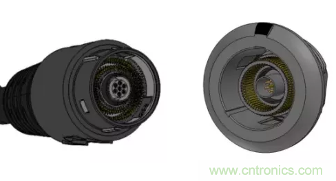 這個標準的高密度(79PIN)連接器有一個外徑為45毫米的金屬外殼、一個螺紋、鎖緊聯接螺母、一個防水密封圈和1.6mm的爬電/間隙尺寸。它的額定溫度為175℃,循環使用壽命高。在評估這一標準連接器時,設計者應該考慮這種非被動螺釘聯軸器是否是適用於特定應用的正確的鎖定機構。