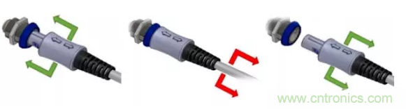 為提高安全性,IEC規定了鎖定機製,防止在醫療過程中意外斷開。鎖定機構通常與電氣連接空間相衝突,有多種形式,如按鈕鎖定(拇指鎖存)、扭轉鎖定(通過旋轉鎖住)以(yi)及(ji)流(liu)行(xing)的(de)推(tui)拉(la)鎖(suo)定(ding)係(xi)統(tong),推(tui)拉(la)鎖(suo)定(ding)係(xi)統(tong)將(jiang)閉(bi)鎖(suo)設(she)計(ji)集(ji)成(cheng)到(dao)咬(yao)合(he)結(jie)構(gou)中(zhong),消(xiao)除(chu)了(le)其(qi)他(ta)選(xuan)項(xiang)所(suo)需(xu)的(de)二(er)次(ci)動(dong)作(zuo),緩(huan)解(jie)它(ta)們(men)所(suo)麵(mian)臨(lin)的(de)設(she)計(ji)挑(tiao)戰(zhan)。