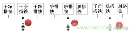第1種方式幹淨搭鐵回路之間的回路並接是允許的;第2種髒搭鐵回路之間的回路並接也是完全可以接受的;對於第3種髒搭鐵與幹淨搭鐵回路並接,通常是可以接受的,但需要得到相關專業的評審通過。