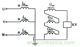 三個單相電壓互感器Y0/Y0形如圖3所示。供電給要求線電壓的儀表、繼電器,並供給接相電壓的絕緣監視電壓表。