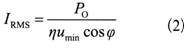 設輸入有效值電流為IRMS,整流橋額定的有效值電流為IBR,應當使IBR≥2IRMS。計算IRMS的公式如下: