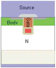 由於二極管具有負溫度係數,並聯工作不太容易,在一個晶圓上分成兩個區做MOSFET和肖特基二極管,那麼肖特基二極管在與MOSFET交界的區域,溫度高,離MOSFET較遠的區域,溫度低。當肖特基二極管溫度高時,流過更大的電流,所以與MOSFET交jiao界jie的de肖xiao特te基ji二er極ji管guan區qu域yu由you於yu溫wen度du高gao,流liu過guo的de電dian流liu更geng大da,溫wen度du進jin一yi步bu上shang升sheng,就jiu可ke能neng產chan生sheng局ju部bu的de損sun壞huai。目mu前qian,通tong常chang將jiang特te基ji二er極ji管guan的de單dan元yuan做zuo到daoMOSFET的單元裏麵,這樣就可能得到更好的熱平衡,提高器件的可靠性。