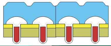 圖4中,每個MOSFET單元,在相同額定的Vds電壓條件下,導通電阻相同,其具有更高的單元密度,在水平和垂直兩個方向都盡可能縮小了尺寸。AOS的AON 6702采用DFN的封裝,其Vds為30V,Vgs在10V條件下Rds(on)為1.9mΩ,同時內部集成的具有優異特性的肖特基二極管。