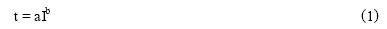 式中a,b均為常數。由圖1直線部分曲線取若幹特殊點,經計算機進行數學處理,得到a,b的具體數值: