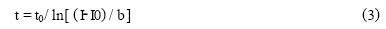 式中t0,I0,b均為常數。由圖1曲線部分曲線取若幹特殊點,經計算機進行數學處理,得到t0,I0,b的具體數值: