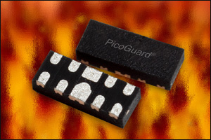 California Micro Devices 宣布針對最先進的數字消費品和計算機應用推出一款超低電容靜電放電 (ESD) 裝置PicoGuard CM1227。CM1227提供四通道+/-15kV接觸靜電放電保護,並且超越了IEC61000-4-2的四級標準。數字電視、機頂盒、計算機和計算機外圍設備等當今最先進的數字消費品和計算機應用正越來越多地采用先進高速串行接口,如USB3.0、MIPI(R)、eSATA、DisplayPort和FireWire。