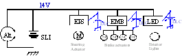 下表總結了現代汽車的汽車電氣/電子係統的主要子係統(和負載):