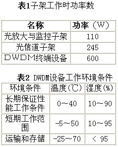 32X2.5GDWDM終端由一個光放大與監控子架和兩個光信道子架組成。光放大及監控子架和光信道子架采用靠背椅結構,子架的光、電信號均采用前出線,高度為11U。3U電源子架提供-48V電源,機架采用21″標準機架。子架工作時的功率參數和環境條件見表1與表2。