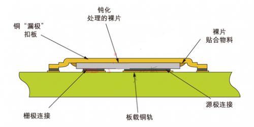 圖2:DirectFET的橫切麵:矽芯片的溫度和電力接口盡量縮小尺寸,同時電力和溫度性能也遠遠超出采用鍵合線的標準封裝。