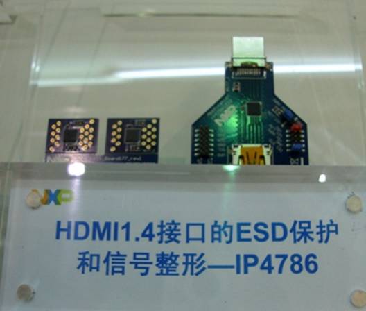 HDM11.4接口允許同時傳送兩路1080p全高清視頻信號,為以後的3D全高清顯示奠定了基礎。IP4786是第一個支持HDMI1.4的ESD保護的小型化封裝IC,其最大的亮點是采用了最新的濾波技術,一般情況下,HDMI在100歐時阻抗在±15,采用新的濾波技術後,在100歐時阻抗在±5~8之間,將為設計工程師在設計3D動畫這類高速信號傳輸時提供了很大的空間。據高先生透露,目前國內已經有客戶在用這款產品做Design。
