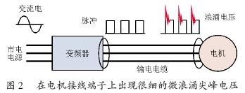 隨(sui)著(zhe)世(shi)界(jie)性(xing)的(de)環(huan)境(jing)保(bao)護(hu)意(yi)識(shi)的(de)提(ti)高(gao)和(he)節(jie)能(neng)要(yao)求(qiu)的(de)迅(xun)速(su)發(fa)展(zhan),特(te)別(bie)是(shi)在(zai)工(gong)業(ye)用(yong)電(dian)機(ji)控(kong)製(zhi)中(zhong),以(yi)電(dian)力(li)半(ban)導(dao)體(ti)組(zu)件(jian)組(zu)裝(zhuang)的(de)變(bian)頻(pin)器(qi)正(zheng)成(cheng)為(wei)應(ying)用(yong)的(de)主(zhu)流(liu)。但(dan)當(dang)變(bian)頻(pin)器(qi)和(he)電(dian)機(ji)之(zhi)間(jian)的(de)接(jie)線(xian)距(ju)離(li)很(hen)長(chang)時(shi),電(dian)機(ji)接(jie)線(xian)端(duan)因(yin)變(bian)頻(pin)器(qi)的(de)高(gao)速(su)開(kai)關(guan)過(guo)程(cheng)引(yin)起(qi)的(de)微(wei)浪(lang)湧(yong)電(dian)壓(ya),給(gei)電(dian)機(ji)的(de)絕(jue)緣(yuan)帶(dai)來(lai)影(ying)響(xiang),造(zao)成(cheng)電(dian)機(ji)損(sun)傷(shang)。這(zhe)裏(li)把(ba)浪(lang)湧(yong)稱(cheng)為(wei)微(wei)浪(lang)湧(yong)是(shi)為(wei)了(le)區(qu)別(bie)於(yu)雷(lei)電(dian)等(deng)突(tu)發(fa)的(de)強(qiang)大(da)浪(lang)湧(yong),微(wei)浪(lang)湧(yong)從(cong)示(shi)波(bo)器(qi)上(shang)看(kan)是(shi)密(mi)集(ji)的(de)、連續存在的、很窄的尖峰電壓。