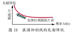 浪湧抑製線的反射降低:langyongdianliudegaopinfenliangzailangyongyizhixianneibeipangluheshuaijian,shilangyongxingzhuangbiandun,langyongpindaizhongxinxiangdipinfangxiangyidong。youconglangyongdianliulaikan,haoxianglangyongyizhixiandetexingzukangzhujianbiangaole,shideyizhixianmoduanbuyibeifanshehuilai。rutu18所示。