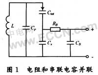 在圖1所示電路中,調諧電壓通過扼流電感和偏置電阻RB加到變容管上,串聯電容CS使交流電路閉合,同時把變容管的負極與並聯電感隔離開,從而使調諧電壓能正確加載。電路中還並聯了一個固定電容Cp。放fang在zai偏pian置zhi電dian阻zu前qian的de退tui耦ou電dian容rong容rong量liang很hen大da,相xiang當dang於yu交jiao流liu接jie地di,故gu在zai後hou續xu的de討tao論lun中zhong可ke不bu予yu考kao慮lv。對dui高gao頻pin交jiao流liu信xin號hao而er言yan,偏pian置zhi電dian阻zu和he串chuan聯lian電dian容rong是shi並bing聯lian的de。通tong過guo網wang絡luo變bian換huan將jiang其qi變bian換huan到dao並bing聯lian諧xie振zhen回hui路lu中zhong,該gai等deng效xiao並bing聯lian電dian阻zuRC為: