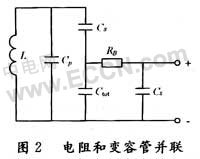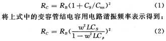 圖2表明所示為調諧電壓直接加載到變容二極管上時的情況,此時由偏置電阻RB產生的並聯損耗電阻可以表示為: