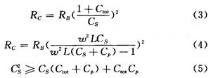 圖1到圖2所示的並聯電容Cp總是存在的。因為電感線圈匝間電容是不可避免的,每個電感均有其自電容,把這個自電容等效為並聯的電容Cp,且認為是無耗的,則總的調諧電容值升高。如果CS足夠大,可以忽略他的影響,則得到有效調諧電容為: