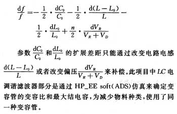 由式(13)可得到要獲得規定的頻率調諧範圍時,諧振電路中所需要變容管的參數——最大結電容和最小結電容比。