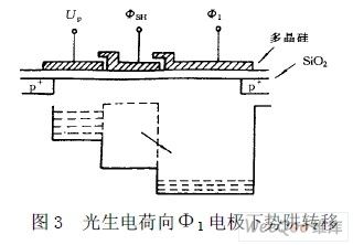 如圖3 所示,MOS 電容中的信號電荷包通過轉移柵轉移到模擬移位寄存器的Φ1 電極下的勢阱中。當 ΦSH 由高變低時,ΦSH 低電平形成的淺勢阱將存儲柵下勢阱與Φ1 電極下的勢阱隔離開。存儲柵勢阱進入光 積分狀態,而模擬移位寄存器將在Φ1 與Φ2 脈衝的作用下驅使轉移到Φ1 電極下勢阱中的信號電荷向左轉移, 並經輸出電路由OS 電極輸出。由於結構上的安排,OS 端首先輸出13 個虛設單元信號,再輸出51 個暗信號, 然後才連續輸出S1 到S2160 的有效像素單元信號。第S2160 信號輸出後,又輸出9 個暗信號,再輸出2 個奇 偶檢測信號,以後便是空驅動。空驅動數目可以是任意的。由於該器件是兩列並行分奇、偶傳輸的,所以在 一個ΦSH 周期內至少要有1118 個Φ1 脈衝,即TSH>1118T1。ΦR 為複位級的複位脈衝,複位一次輸出一個 信號。