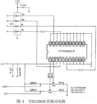 (2)驅動電路。TCD1206UD 的驅動電路如圖4 所示: