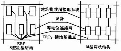 (4)等電位保護。電子設備的機櫃機架、金屬外殼、金屬管槽、屏蔽線纜外層、信息設備的防靜電接地端、安全保護接地端、浪湧保護接地端等,在同等電位連接網絡的接地端子相連接時,均需采用最短的距離。控製係統的等電位連接,通常分為“S型星型結構”以及“M型網狀結構兩種”,其中在控製係統中設備較少或者進行局部控製時通常采用S型星型結構,而在相對較大的控製係統中則采用M型的網狀結構。等電位連接的基本方式如圖3所示。