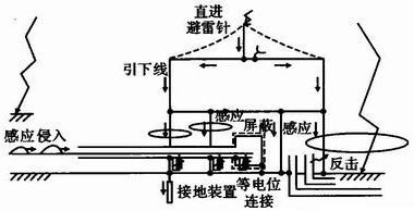 圖1 雷擊損壞計算機控製係統的途徑示意圖