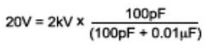 對於一個給定的去耦電容,ESD測試中初始電壓的變化遵循電荷守恒原理。例如,使用一個0.01μF去耦電容,2kV HBM測試電壓可以達到20V: