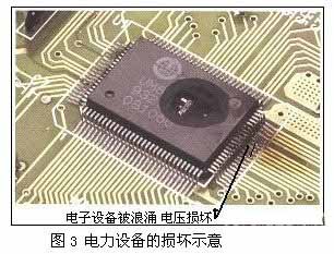⑵ 電dian力li設she備bei的de損sun壞huai。幹gan擾rao信xin號hao和he浪lang湧yong對dui電dian路lu的de不bu利li影ying響xiang是shi每mei一yi個ge電dian力li工gong程cheng師shi都dou不bu能neng忽hu視shi的de問wen題ti。在zai過guo去qu繼ji電dian器qi的de短duan時shi間jian過guo載zai輸shu入ru可ke能neng是shi沒mei有you危wei險xian的de,但dan是shi在zai使shi用yong半ban導dao體ti電dian路lu的de時shi代dai裏li,即ji使shi是shi低di能neng量liang脈mai衝chong也ye能neng造zao成cheng損sun壞huai或huo操cao作zuo失shi敗bai,其qi損sun壞huai見jian圖tu3所示。