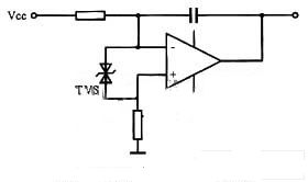 集(ji)成(cheng)運(yun)放(fang)對(dui)外(wai)界(jie)電(dian)應(ying)力(li)非(fei)常(chang)敏(min)感(gan)。因(yin)此(ci),在(zai)使(shi)用(yong)運(yun)放(fang)的(de)過(guo)程(cheng)中(zhong),如(ru)果(guo)因(yin)操(cao)作(zuo)失(shi)誤(wu)或(huo)采(cai)取(qu)了(le)不(bu)正(zheng)常(chang)的(de)工(gong)作(zuo)條(tiao)件(jian),往(wang)往(wang)會(hui)出(chu)現(xian)過(guo)大(da)的(de)電(dian)壓(ya)或(huo)電(dian)流(liu),特(te)別(bie)是(shi)浪(lang)湧(yong)和(he)靜(jing)電(dian)脈(mai)衝(chong),從(cong)而(er)很(hen)容(rong)易(yi)使(shi)運(yun)放(fang)受(shou)損(sun)或(huo)失(shi)效(xiao)。圖(tu)5所示是用TVS在運放差模輸入端防止過壓損傷的保護電路。