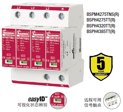 Cooper Bussmann IEC I級230伏、四級、結合了雷電流和浪湧保護器的模塊具有兩個特色:局部的、easyIDTMkeshihuabianbiegongnenghekexuanpeideyuanchengchudianxinhao。qidutedemokuaihezhakongzhixitongjiangbaohumokuaigudingzaidibu。anyashifanganniukejianbiandigenghuanmokuai,erbuxuyao