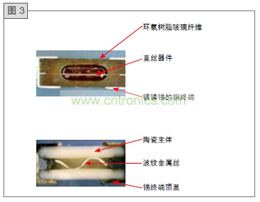 圖3為直絲設計的2410SFV保險絲和一般波紋絲設計的對比。直絲器件在空氣中熔斷性能更一致,具有更低電阻和良好的浪湧抵