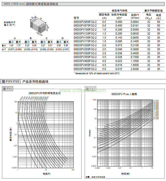 0603超快斷式表麵貼裝保險絲具有極優的抗浪湧能力