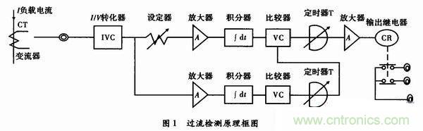 過流檢測傳感器的工作原理如圖1所示。通過變流器所獲得的變流器次級電流經I/V轉zhuan換huan成cheng電dian壓ya,該gai電dian壓ya直zhi流liu化hua後hou,由you電dian壓ya比bi較jiao器qi與yu設she定ding值zhi相xiang比bi較jiao,若ruo直zhi流liu電dian壓ya大da於yu設she定ding值zhi,則ze發fa出chu辨bian別bie信xin號hao。但dan是shi這zhe種zhong檢jian測ce傳chuan感gan器qi一yi般ban多duo用yong於yu監jian視shi感gan應ying電dian源yuan的de負fu載zai電dian流liu,為wei此ci需xu采cai取qu如ru下xia措cuo施shi。由you於yu感gan應ying電dian源yuan啟qi動dong時shi,啟qi動dong電dian流liu為wei額e定ding值zhi的de數shu倍bei,與yu啟qi動dong結jie束shu時shi的de電dian流liu相xiang比bi大da得de多duo,所suo以yi在zai單dan純chun監jian視shi電dian流liu電dian瓶ping的de情qing況kuang下xia,感gan應ying電dian源yuan啟qi動dong時shi應ying得de到dao必bi要yao的de輸shu出chu信xin號hao,必bi須xu用yong定ding時shi器qi設she定ding禁jin止zhi時shi間jian,使shi感gan應ying電dian源yuan啟qi動dong結jie束shu前qian不bu輸shu出chu不bu必bi要yao的de信xin號hao,定ding時shi結jie束shu後hou,轉zhuan入ru預yu定ding的de監jian視shi狀zhuang態tai。