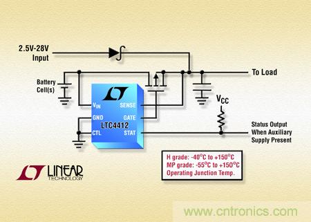 【導讀】近日,淩力爾特公司宣布推出低損耗電源通路控製器LTC4412,該控製器具有最新高可靠性和軍用溫度級版本 ,是堅固的“理想二極管”電源通路控製器。LTC4412 可同時實現多個輸入 DC 電源的低損耗 “合路” 操作。