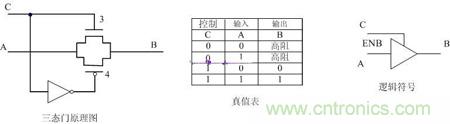 這個器件也稱作“帶控製端的傳輸門”。帶有一定驅動能力的三態門也稱作“緩衝器”,邏輯符號是一樣的。