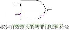 上述圖中畫的邏輯器件符號均是正邏輯下的輸入、輸出關係,即對“1”(高電平)有效而言。而單片機中的多數控製信號是按照負有效(低電平有效)定義的。例如片選信號CS(Chip Select),指該信號為“0”時具有字符標明的意義,即該信號為“0”表示該芯片被選中。因此,“或非”門的邏輯符號也可以畫成下圖。