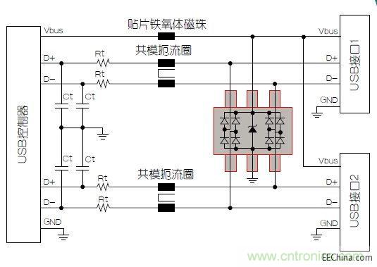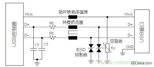 問題:其中一些點可能不受影響,這些點包括外購USB控製器的技術性實現,或最終用戶使用“便宜的”USB電纜。因此必須采取一些預防性措施,防止接口受到可能損壞USB控製器的外部幹擾的影響,同時通過電纜限製信號的幹擾輻射量。