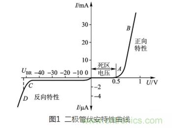 提到二極管,大家最熟悉的就是二極管的單向導電性,反映伏安曲線上如圖1所示。當正向偏壓U=0.5V(矽管)時,二極管開始導通,電流越大電壓越大,具有很低阻抗;當(dang)加(jia)反(fan)向(xiang)偏(pian)壓(ya)時(shi)二(er)極(ji)管(guan)不(bu)導(dao)通(tong),在(zai)一(yi)定(ding)範(fan)圍(wei)內(nei)有(you)很(hen)小(xiao)的(de)漏(lou)電(dian)流(liu),具(ju)有(you)很(hen)大(da)阻(zu)抗(kang)。其(qi)這(zhe)個(ge)單(dan)向(xiang)導(dao)電(dian)性(xing),也(ye)起(qi)到(dao)了(le)開(kai)關(guan)的(de)作(zuo)用(yong),所(suo)以(yi)在(zai)整(zheng)流(liu)和(he)開(kai)關(guan)方(fang)麵(mian)都(dou)有(you)廣(guang)泛(fan)的(de)應(ying)用(yong)。