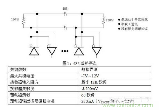 隻要接收器的輸入阻抗大於12kΩ,那麼可以在一根傳輸總線上使用多於32個這樣的收發器。