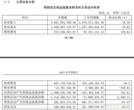 彙頂科技2017年的公司研發支出為5.97億元,較2016年3.08億元增加93.83%,研發開支占銷售收入比重為16.2%。對於研發費用的增加,公司解釋稱,是為了在新技術,新產品領域為公司的持續增長提供更有力的動力,符合公司的長期發展戰略。