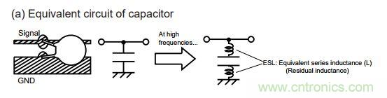 一般來說,直插件的引線較長,其寄生電感比SMD大;電解電容內部有大量卷繞結構的鋁箔,寄生電感比其它工藝的電容大。1206尺寸的MLCC內部電極麵積和焊接端子截麵明顯比0805大,所以尺寸越大的MLCC,自諧振頻率就越低。