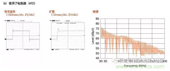 BLM18R不僅能顯著抑製100MHz以上頻帶的頻譜電平,還能抑製波形失真。