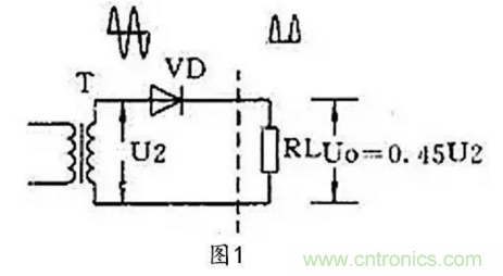 半波整流電路一般情況下隻需要一個二極管。詳細的情況我們可以看下下麵的圖1,在圖1中你能看到在交流電正半周時 VD 導通,負半周時 VD 截止,負載 R 上得到的是脈動的直流電。