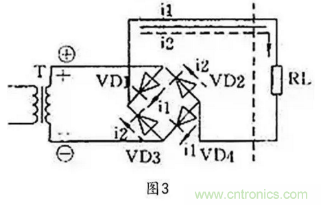 像我們ASEMI的整流橋一般情況下也都是全波橋式整流,全波橋式整流用的是4個二極管組成的橋式電路,這種電路隻能有單個次級線圈的變壓器。見圖3,負載上的電流波形和輸出電壓值與第二種全波整流電路是完全相同的。