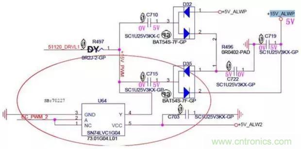 1.由於電容兩端的電壓不能突變,此時C715兩端的電壓為左邊5V,右邊為10V,然後電流經過D35的2引腳對C719電容充電,充完電後C719的電壓升到了10V。