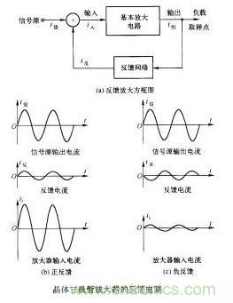 如ru果guo從cong放fang大da器qi的de輸shu出chu端duan反fan送song回hui來lai的de信xin號hao與yu輸shu入ru信xin號hao的de相xiang位wei相xiang同tong,也ye就jiu是shi說shuo,當dang原yuan來lai的de輸shu入ru信xin號hao為wei正zheng半ban周zhou時shi,反fan送song回hui來lai的de信xin號hao也ye是shi正zheng半ban周zhou,使shi輸shu人ren信xin號hao進jin一yi步bu增zeng強qiang,如ru圖tu5-51( b.)所suo示shi。這zhe種zhong反fan饋kui叫jiao正zheng反fan饋kui,如ru果guo反fan送song回hui來lai的de信xin號hao與yu原yuan來lai的de輸shu人ren信xin號hao相xiang位wei相xiang反fan,也ye就jiu是shi說shuo,當dang原yuan來lai的de輸shu人ren信xin號hao為wei正zheng半ban周zhou時shi,反fan送song回hui來lai的de信xin號hao為wei負fu半ban周zhou,削xue弱ruo了le輸shu人ren信xin號hao,如ru圖tu5-51(。)所示。這種反饋叫負反饋。