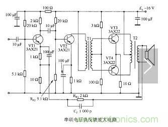 上(shang)麵(mian)介(jie)紹(shao)的(de)是(shi)單(dan)極(ji)放(fang)大(da)器(qi)的(de)負(fu)反(fan)饋(kui),又(you)叫(jiao)小(xiao)環(huan)負(fu)反(fan)饋(kui)。小(xiao)環(huan)負(fu)反(fan)饋(kui)對(dui)改(gai)善(shan)各(ge)級(ji)放(fang)大(da)器(qi)的(de)性(xing)能(neng)起(qi)著(zhe)重(zhong)要(yao)的(de)作(zuo)用(yong)。對(dui)於(yu)多(duo)級(ji)放(fang)大(da)器(qi),還(hai)常(chang)從(cong)輸(shu)出(chu)端(duan)取(qu)反(fan)饋(kui)信(xin)號(hao)送(song)回(hui)輸(shu)人(ren)端(duan),這(zhe)叫(jiao)大(da)環(huan)負(fu)反(fan)饋(kui)。大(da)環(huan)負(fu)反(fan)饋(kui)對(dui)改(gai)進(jin)整(zheng)機(ji)性(xing)能(neng)有(you)顯(xian)著(zhu)的(de)作(zuo)用(yong)。