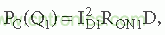 其中I D是漏極電流,R ON是製造商規定的標稱環境溫度下的溝道電阻,D是Q 1的占空比。
