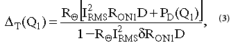 其中δ是R ON的溫度係數,單位為°C -1,P D是動態損耗項,與R ON無關。