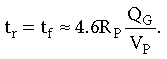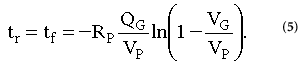當V G達到V P的 99%時,MOSFET完全導通。如果將此關係替換回公式5,則上升和下降時間將減少為: